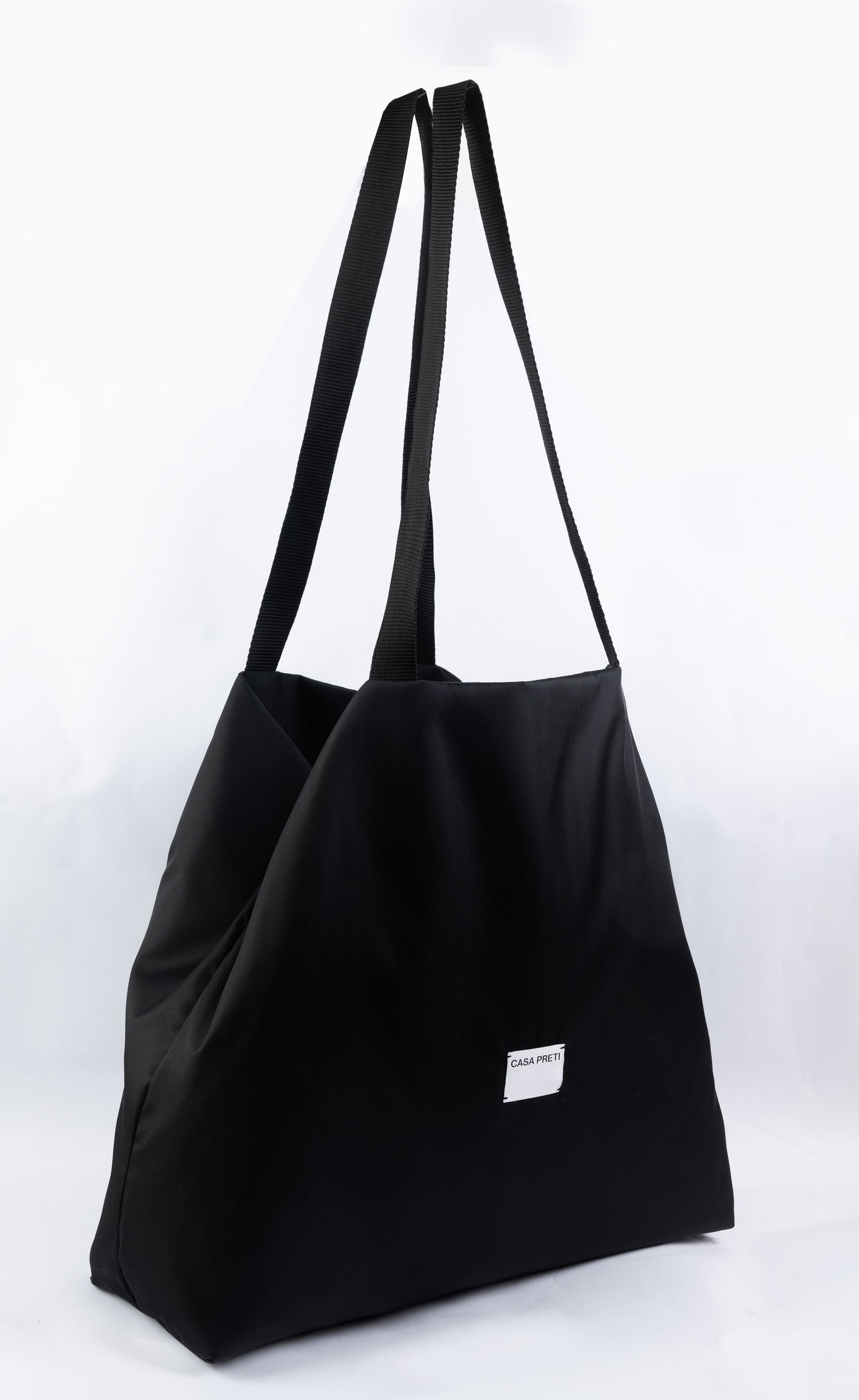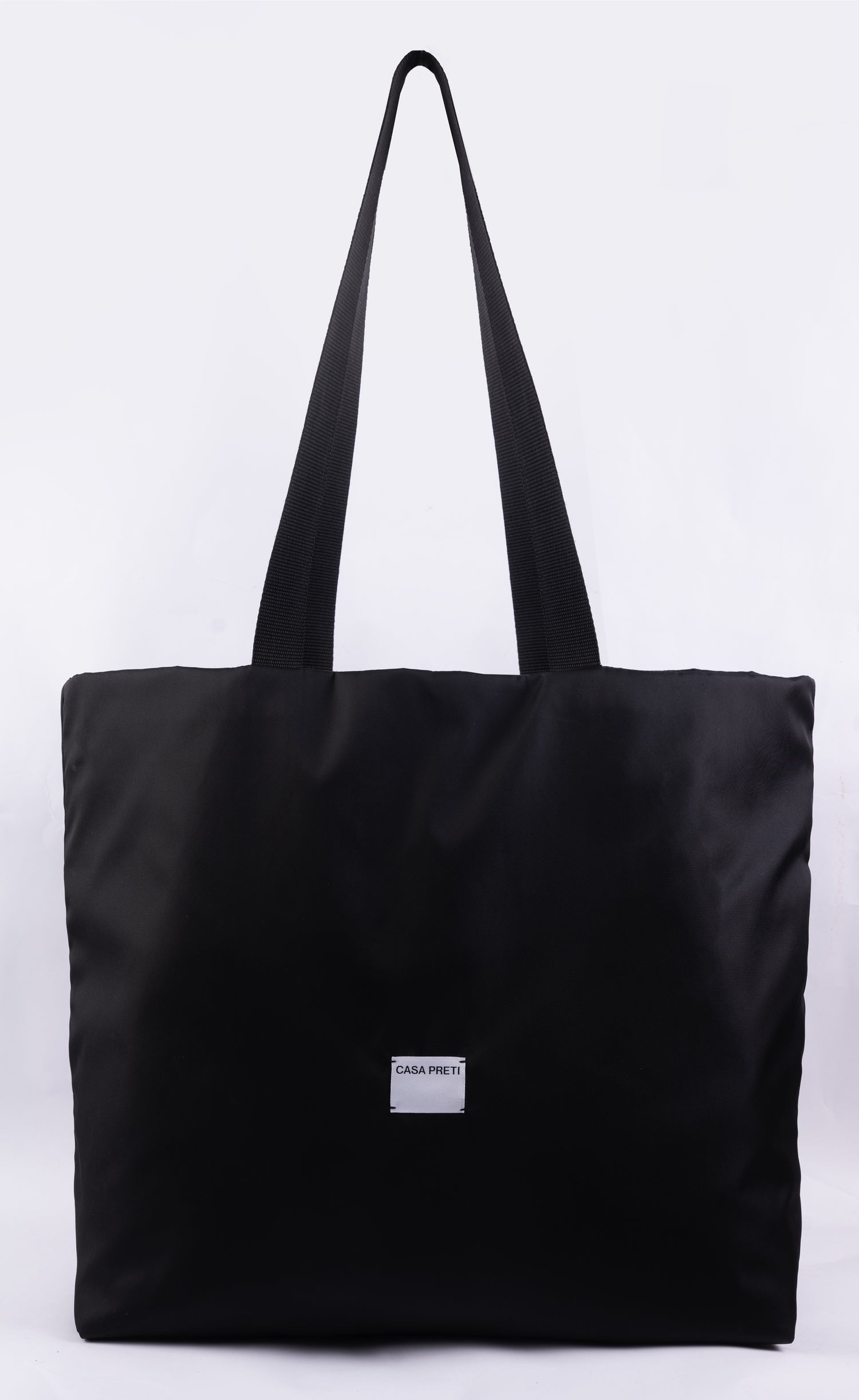Borsa morbida realizzata in nylon rigenerato ECONYL®, un filato ottenuto al 100% da materiali di scarto come reti da pesca dismesse e scarti di tessuto.