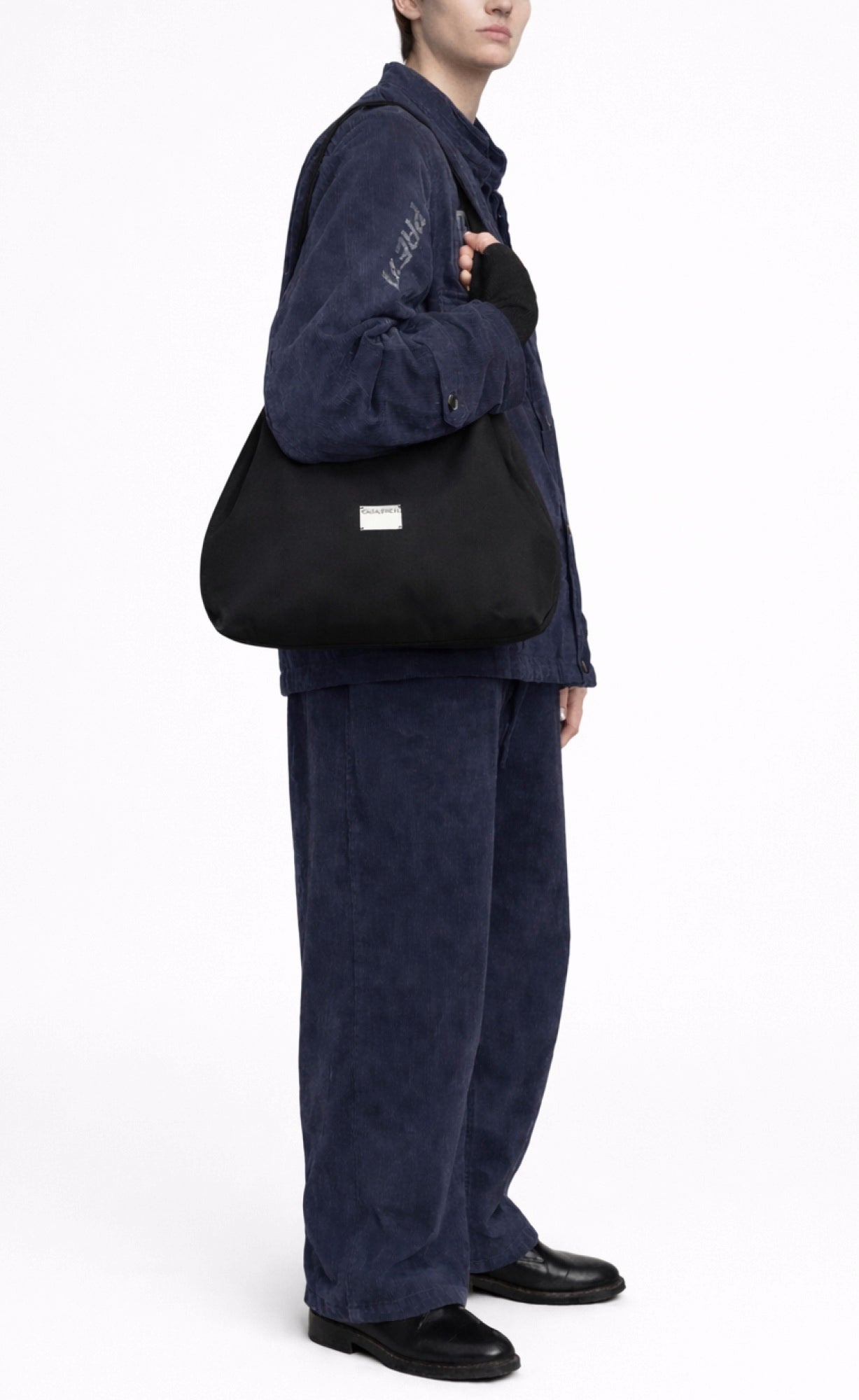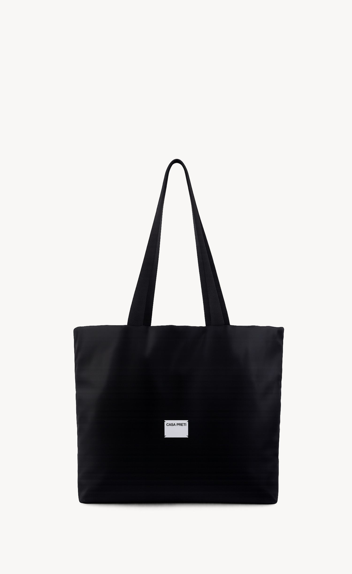 Borsa morbida realizzata in nylon rigenerato ECONYL®, un filato ottenuto al 100% da materiali di recupero come reti da pesca dismesse e materiali tessili reimpiegati.