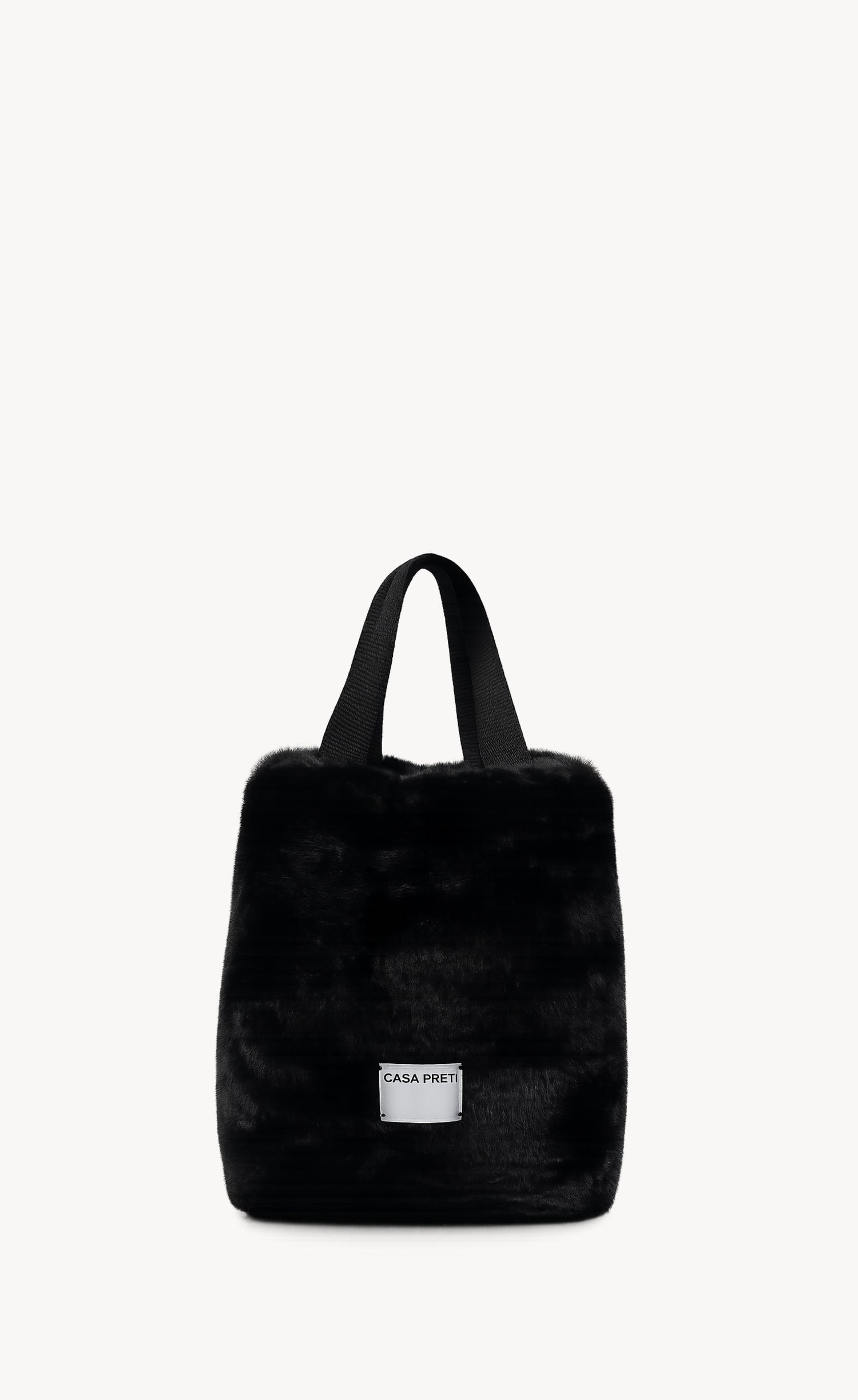 Questa borsa semirigida è realizzata in morbida eco-pelliccia sintetica, un materiale completamente privo di componenti di origine animale che riproduce l’aspetto e il comfort della pelliccia tradizionale.